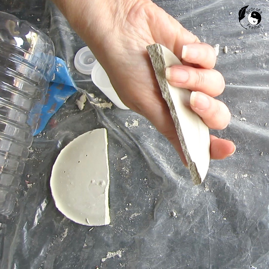 Now use the cement puck you made from the leftover cement to sand the ridges on the sides of the cement planter.