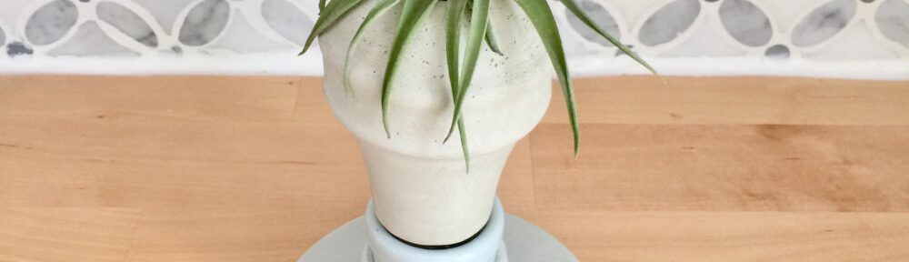 We’re back with another variation on how to make a cement planter using upcyled light bulb packaging. If you love air plants, you’ll adore this unique standing air plant holder. I guess once you start doing cement crafts, the ideas just keep on coming. Keep reading for easy cement craft ideas!