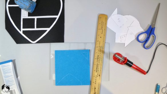 If the chalk has faded on the perimeter, use the stencil to re-trace the heart and cut it out. However, if you find the pattern has ‘grown’, use the grid ruler instead allowing 1/4″ seam allowance.