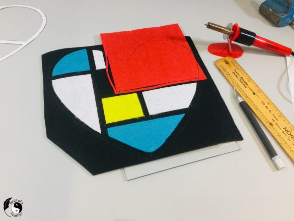 I’m using a stencil burner to cut the felt which does double duty to fuse each oolour to the black heart! I don’t know what felt is actually made of, but many synthetic felts are made from recycled plastic water bottles. For that reason, please do this is a well ventilated area.