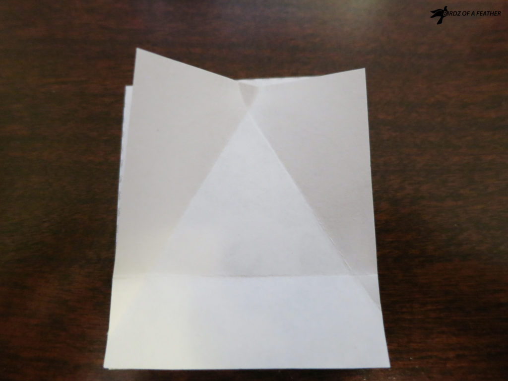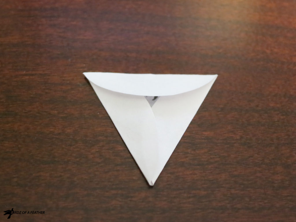 To fold the remaining (large) logos, I cut out the folding template into a square shape instead of a circle. Then I folded along the lines to crease the triangle shape into the paper.