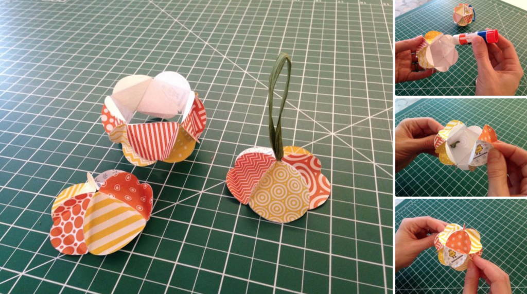 If you’re using a random pattern for your ornament, you can ignore the next steps. Follow the tutorial on Instructables by just cutting circles and folding triangles as above. This, however, is where my instructions diverge from Instructables.