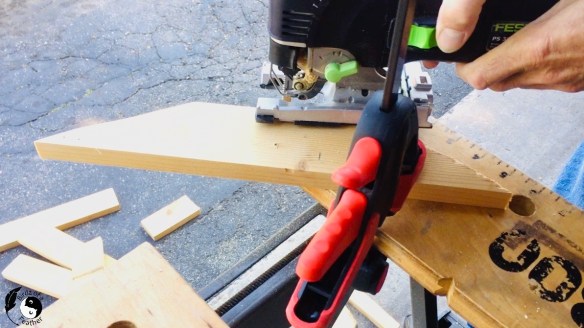 If necessary, temporarily remove the top and bottom pieces from the batten to finish cutting the edges with the jigsaw. If you do, clamp again to the workbench.