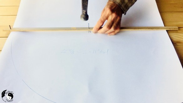 Any method will do to draw the circle, but here’s what we do. Using a thin piece of wood, drill through the centre and place a nail through the hole. Measure half the distance of the circle and drill a tight hole to accommodate a piece of pencil lead. Centre the wood on a piece of paper large enough to draw the circle.