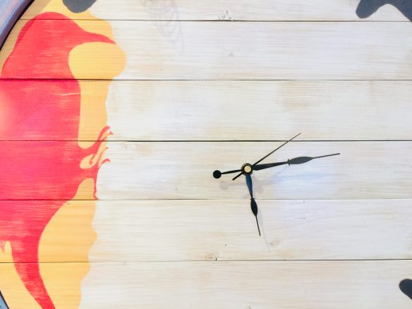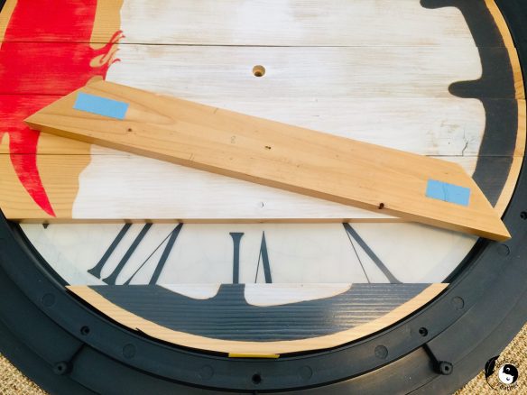 Install the clock mechanism according to directions on package. This is my least favourite part of this wooden wall art DIY – trying to attach all those fiddly little bits!